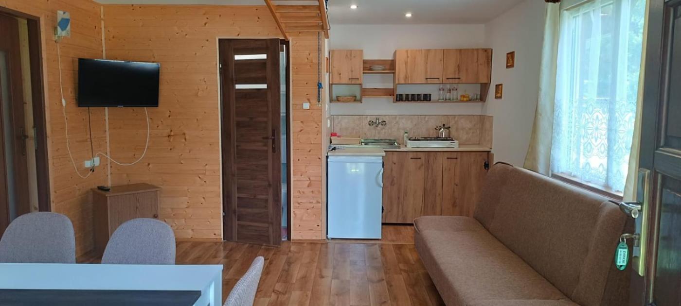 Domek z 1 sypialnią. Featuring a private entrance, this air-conditioned chalet is comprised of 1 living room, 1 separate bedroom and 1 bathroom with a shower. The fully equipped kitchenette features a stovetop, a refrigerator and kitchenware. The chalet offers a flat-screen TV with satellite channels, a tea and coffee maker, a dining area, a wardrobe as well as garden views. The unit offers 3 beds. Domek - 5 osobowy. Powierzchnia pokoju ok.: 32 mkw. ;
